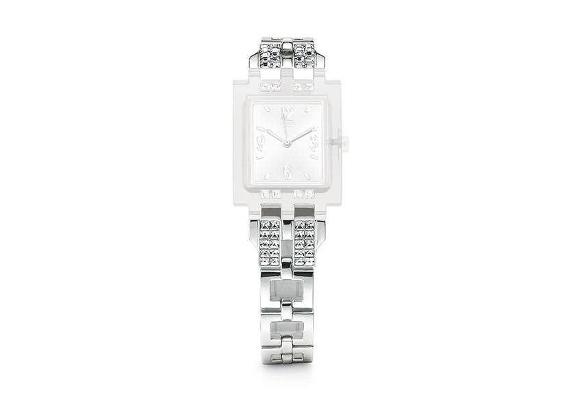 SWATCH SUBM102G Be Found Saat Kordonu 12mm ölçüde, gümüş renktedir ve üzerine taşlar dizilmiştir.Orjinal Swatch saat kordonudur.